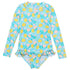 Combine surf with a little citrus and you've got our Lemon Drops collection, designed to protect your beach babe in UPF50+ fabric as she rides the waves. Boasting full upper-body coverage that's easy to zip up from the back, this long-sleeved surfsuit provides maximum comfort for days seaside.
