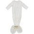These gowns are size 0-3. They are made out of supremely soft Bamboo Rayon to keep your little one comfortable. We have a variety of gender neutral designs and colors making them perfect for any baby. They have fold over hands and two snaps for easy on and off. We also have shoulder flaps to make it easily pull over your little ones head, we want to make dressing your baby as easy as possible. The bottom is easily tied and untied in a knot for no-fuss diaper changes which makes it a newborn baby essential! These are made out of the same fabric as our stretch swaddles and match the colors of the stretch swaddles, head wraps, and hats.
